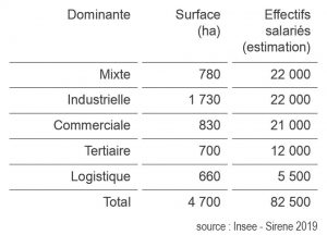 - les zones à dominante logistique, principalement dédiées aux activités de « transports et entreposage »;