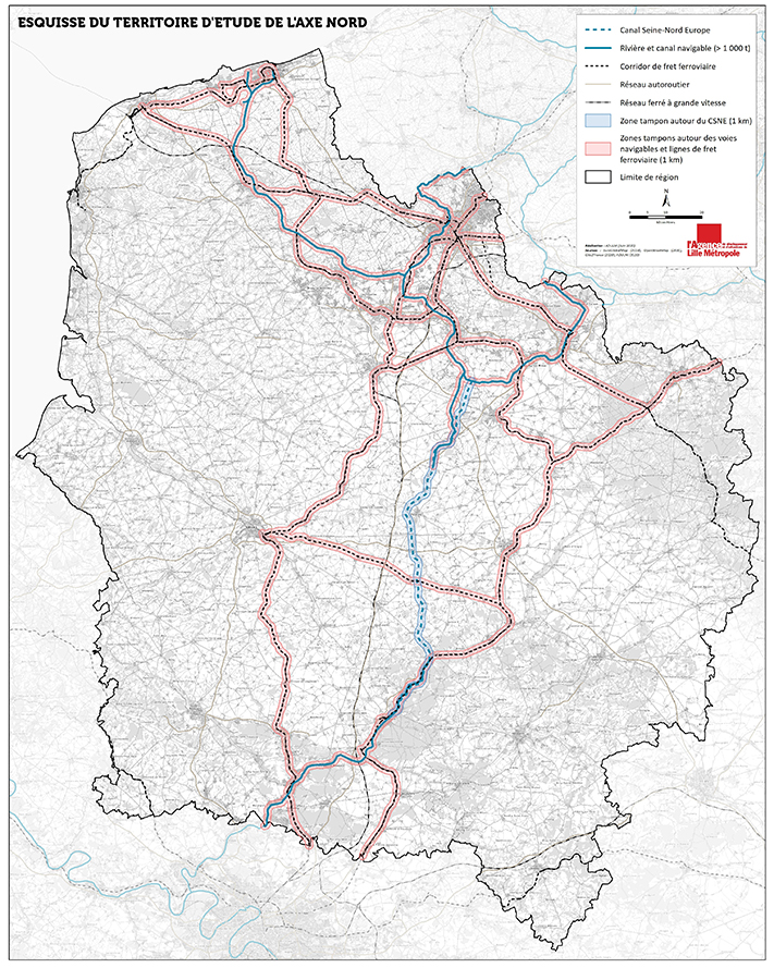 Depuis 2020, Oise-les-Vallées, en tant que membre du réseau URBA8, le réseau des 8 agences d’urbanisme des Hauts-de-France, accompagne la Délégation Générale au Développement de l’Axe Nord.