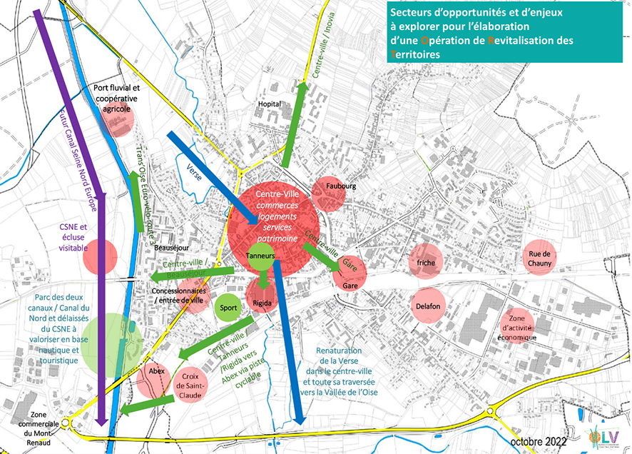 Dans le Département de l’Oise, 13 communes sont concernées par ce programme parmi lesquelles celles de Noyon et de Mouy, qui ont fait appel en 2022 à Oise-les-Vallées pour les accompagner dans leurs démarches.