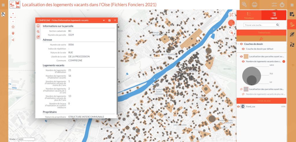 L’observatoire se présente à la fois sous la forme d’une carte interactive qui localise les logements vacants à l’échelle de la parcelle et d’un tableau de bord (avec repères chiffrés et cartes statistiques) aux trois échelles départementales, intercommunale et communale.