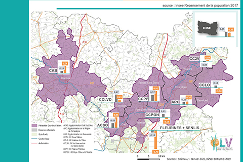 Ainsi, la population municipale de l’Oise s’élève à 824 503 habitants en 2017. De son côté, l’ensemble des communes du territoire d’Oise-les-Vallées comptabilise la même année une population de 402 100 habitants, comme l’indique le document synthétique ci-dessous.